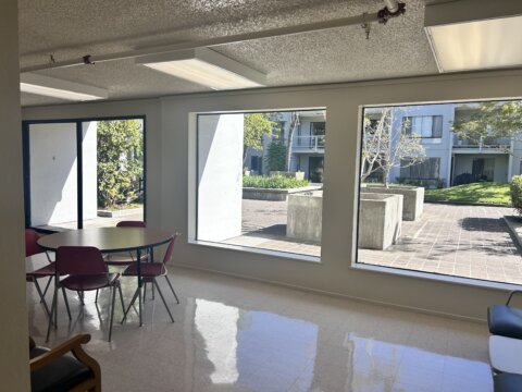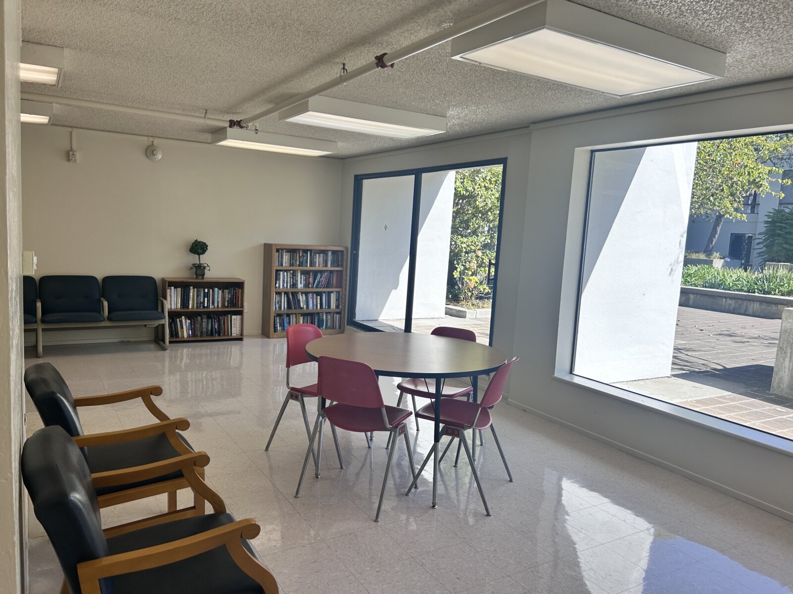 Relax with a lovely courtyard view featuring a tranquil fountain and lush landscaping.